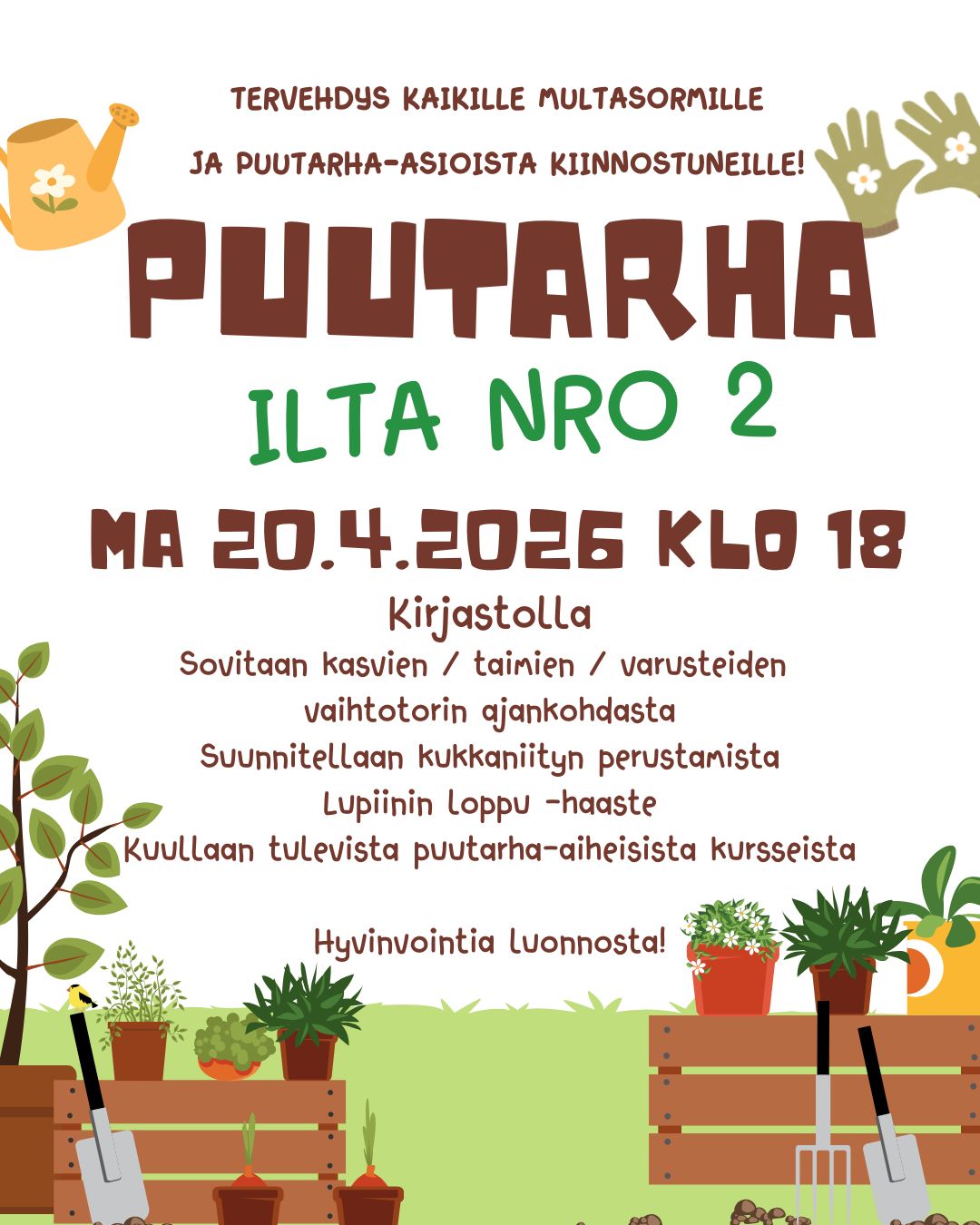 - kuullaan tulevista puutarha-aiheisista kursseista